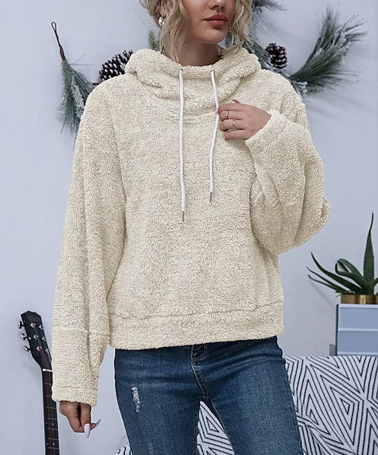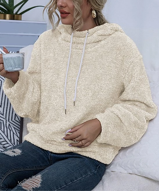 Cozy up on chilly days in this soft and fuzzy hoodie that’s easy to throw on with your fave leggings and a beanie.
