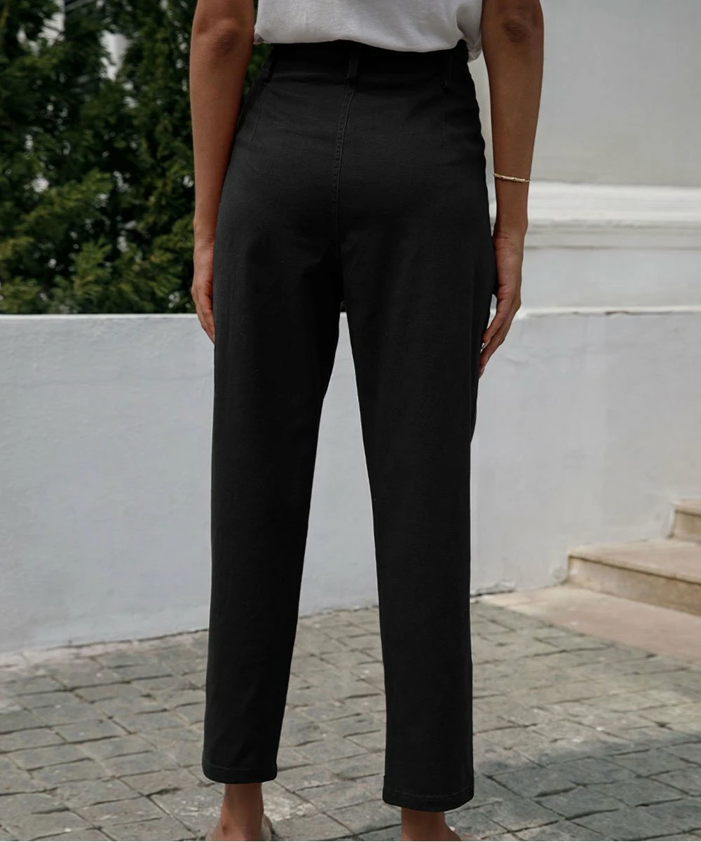 Upgrade your casual look with these chic crop pants that feature a flattering high waist and statement-making button fly.