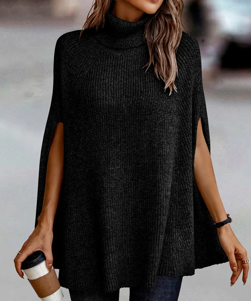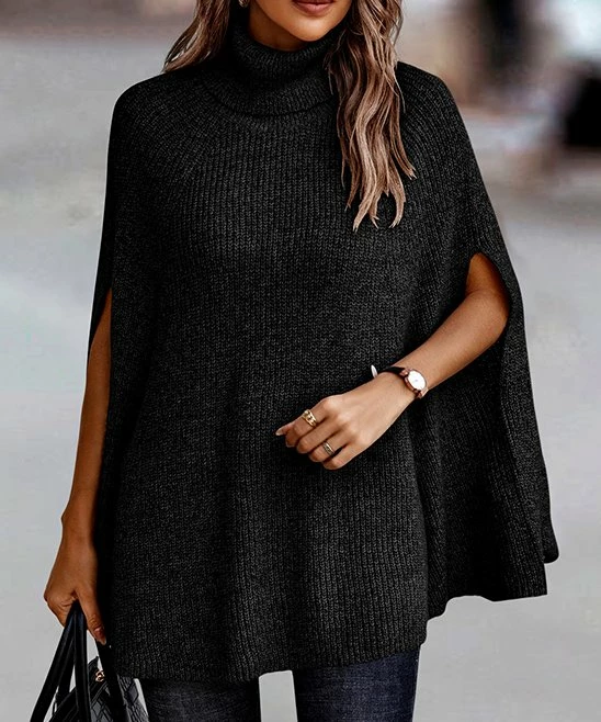 Coupon ❤️ Romantichut Black Turtleneck Poncho – 👩 Women 👏