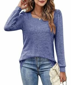 This marled cotton-blend top features a face-framing square neckline and long puffed sleeves.