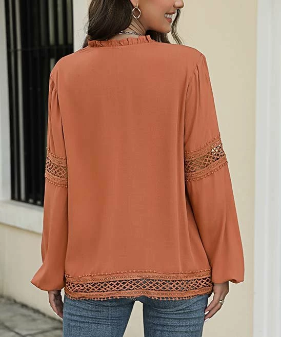 With a tie-accented notch neck, crochet eyelet trim and polished pin tucks, this puff-sleeve top is all about the details.