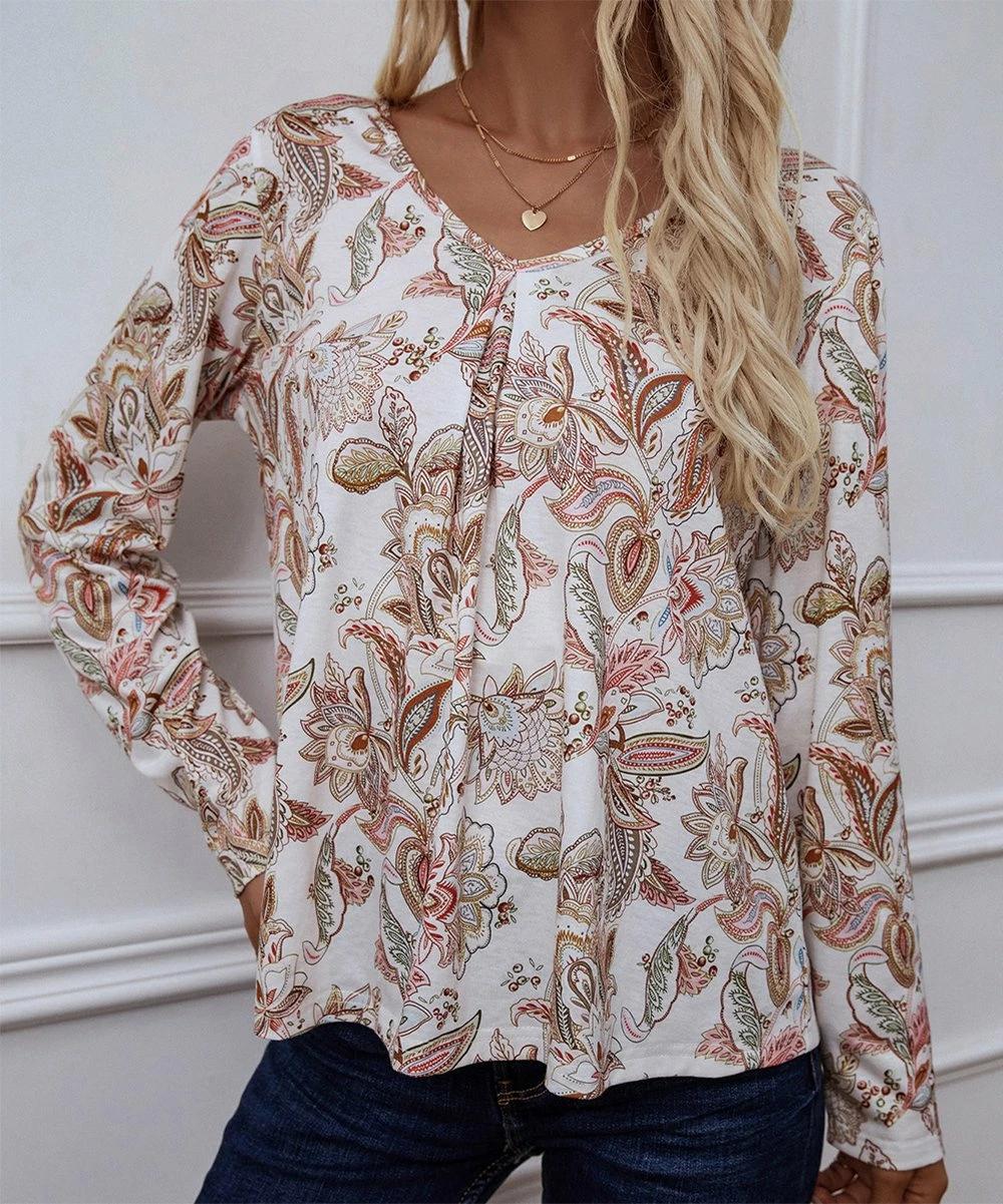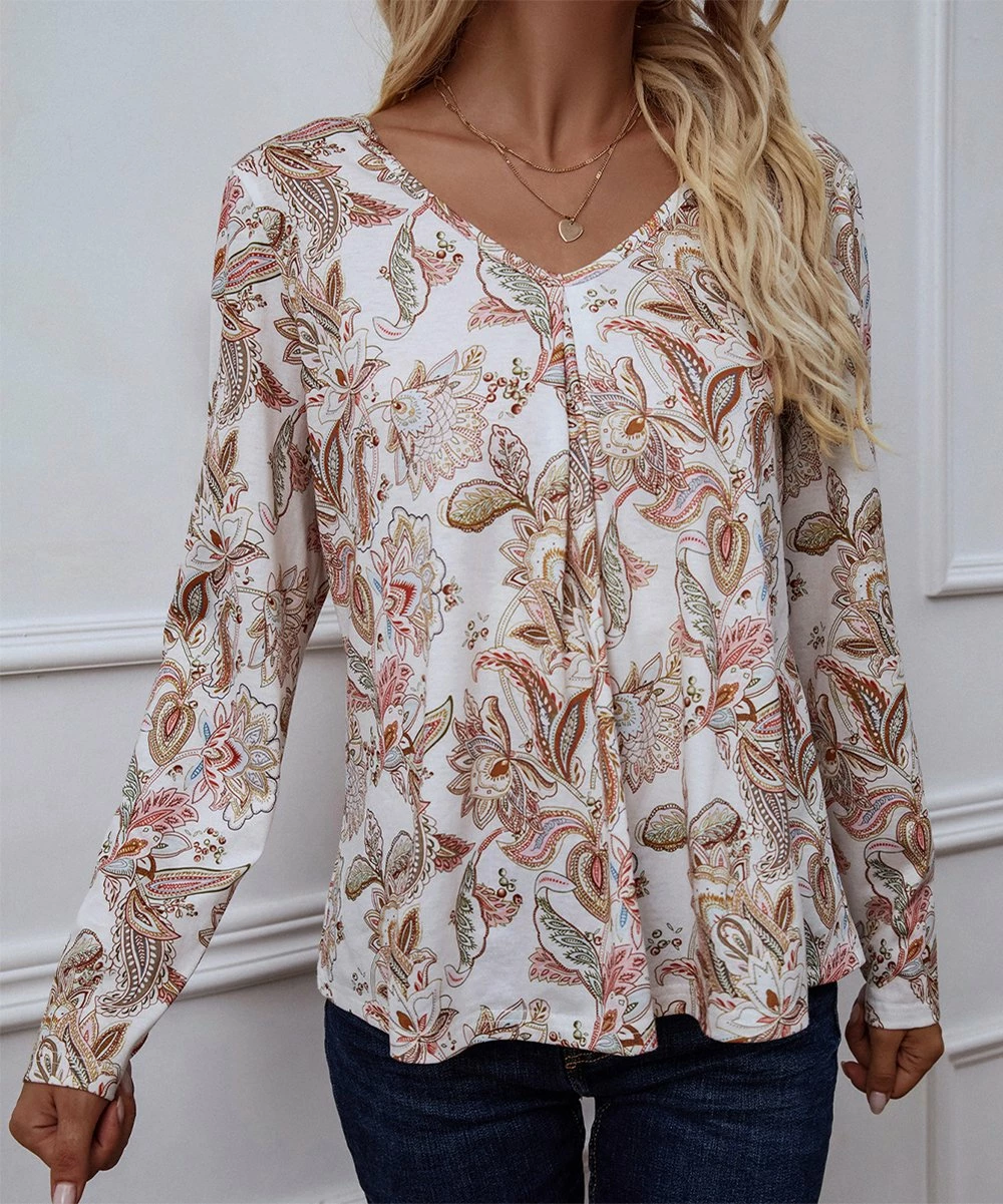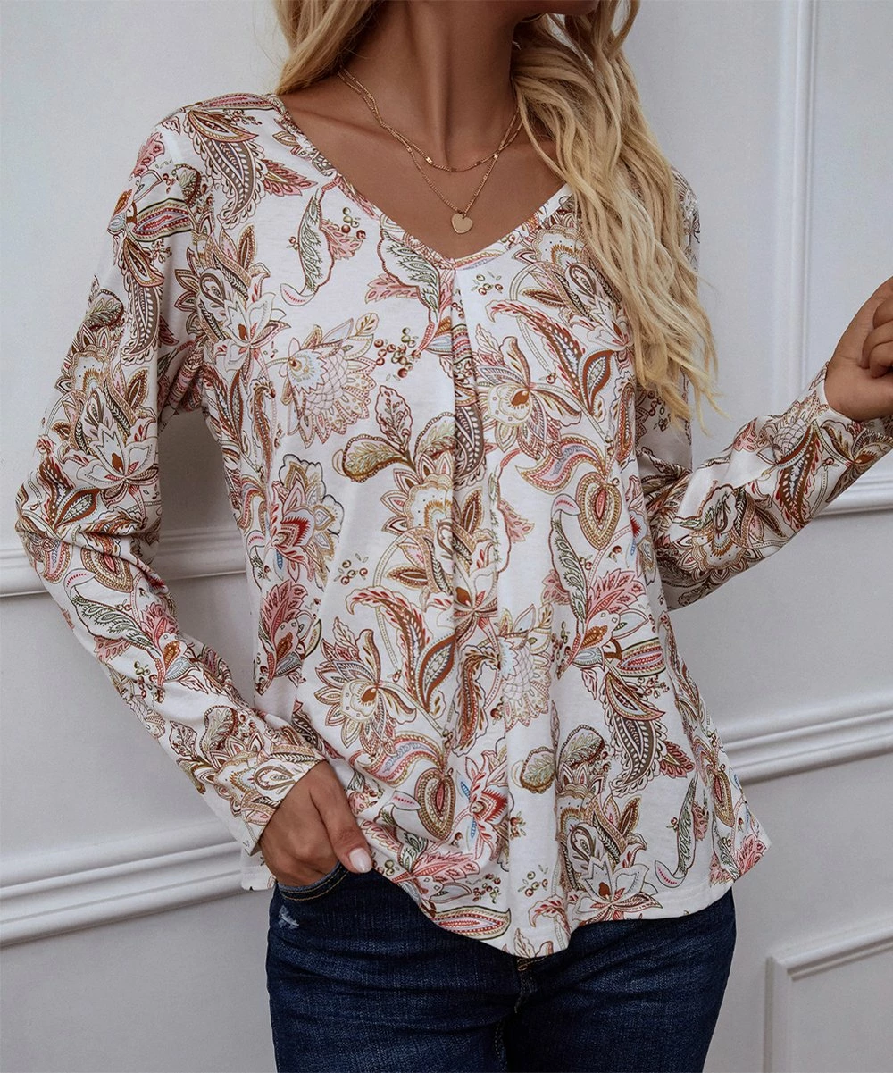 Add a vibrant touch to your look with this long-sleeve top boasting stretch-infused material and a flattering V-neckline for a hint of sass.