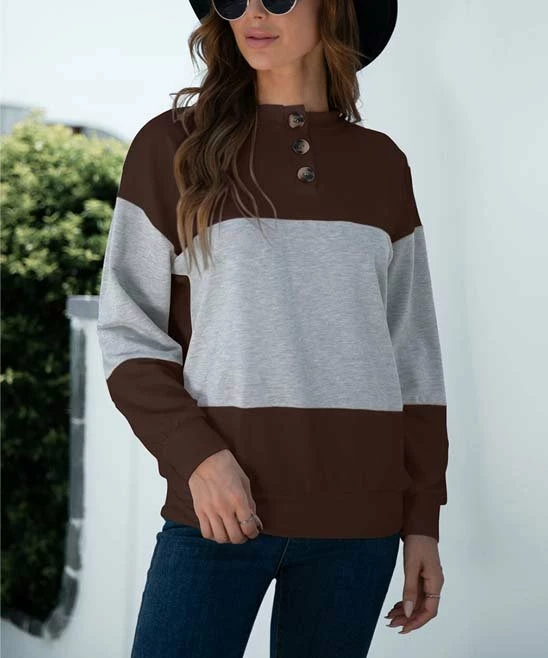 Keep toasty warm in this color-block pullover crafted with a touch of stretch. It’s detailed with three buttons on the neck for a custom fit.