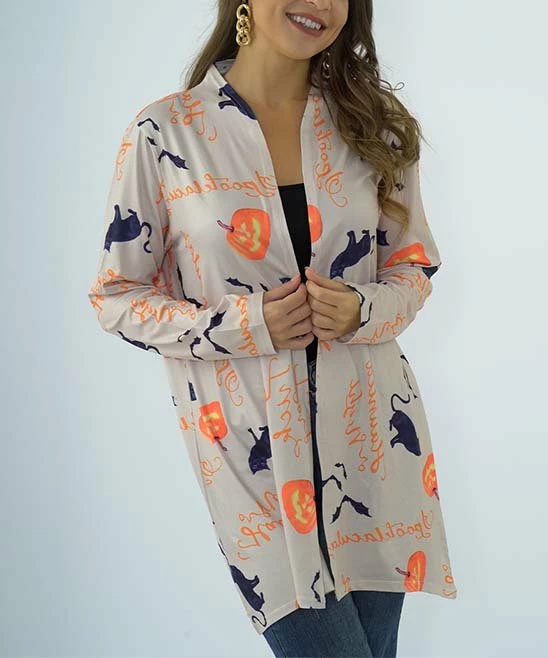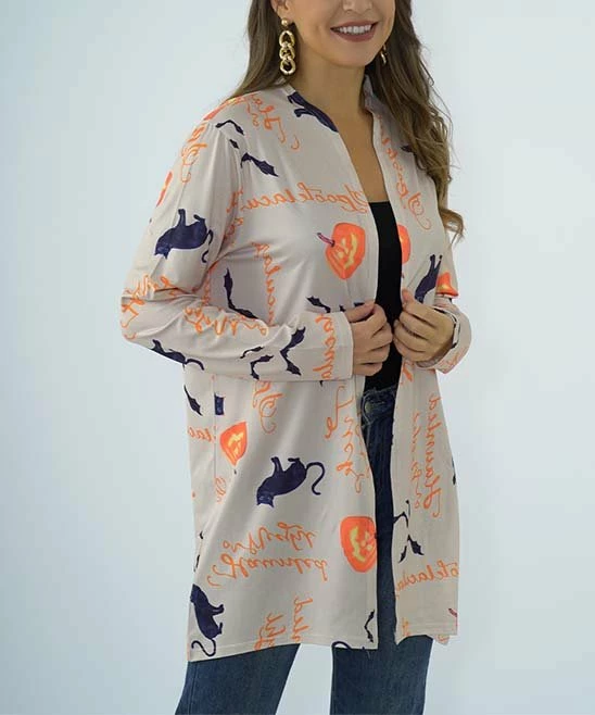 Go for a cozy layered look as you slip on this open cardigan featuring a fun pattern and stretch-enhanced material.