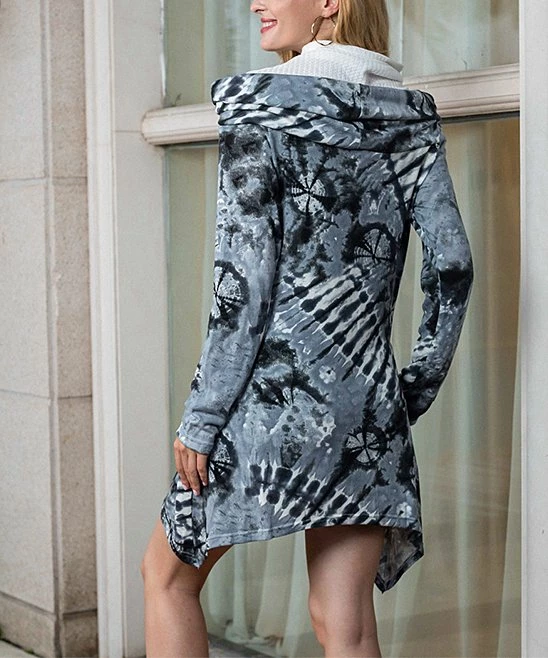 Catch eyes and turn heads wearing this tie-dye tunic featuring a contrasting cowl neck collar and sidetail hemline.