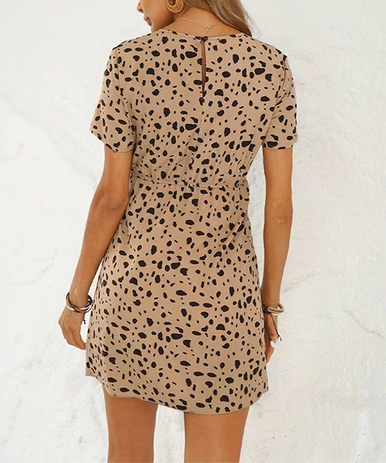 Bold cheetah-print dress featuring an adjustable waist sash and a back keyhole closure.
