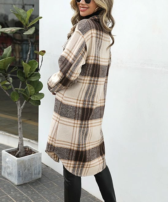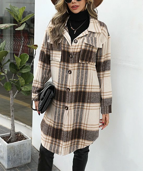 Rock a classic print with a twist with this longline shacket that boasts a versatile color palette and a chic curved hemline.