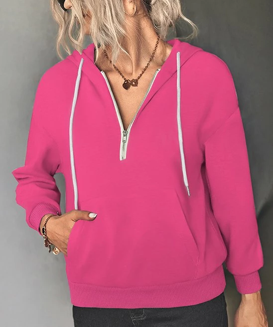 A quarter-zip neckline lets you customize the fit of this drawstring hoodie to be just right for you.