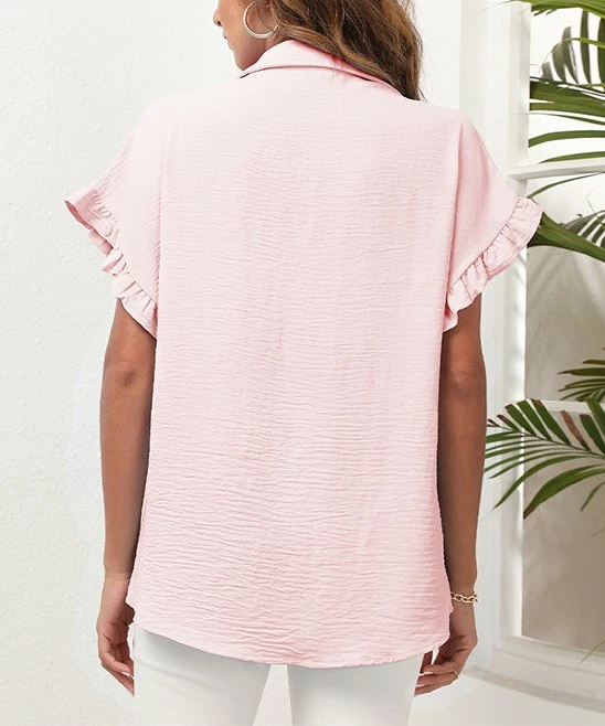 Cheap ๐Ÿ˜€ Romantichut Pink Ruffle-Sleeve Button-Front Top – ๐Ÿ‘ฉ Women โœจ