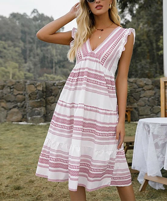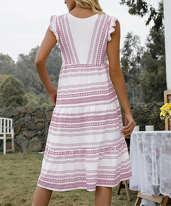 Sunshine-ready sleeveless A-line dress featuring a colorful stripe design and handy pockets.