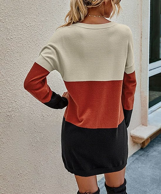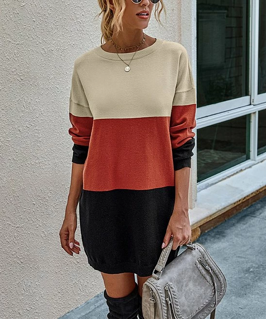 Keep cozy by layering up with this color block sweater dress knit from stretch-blend fabric.