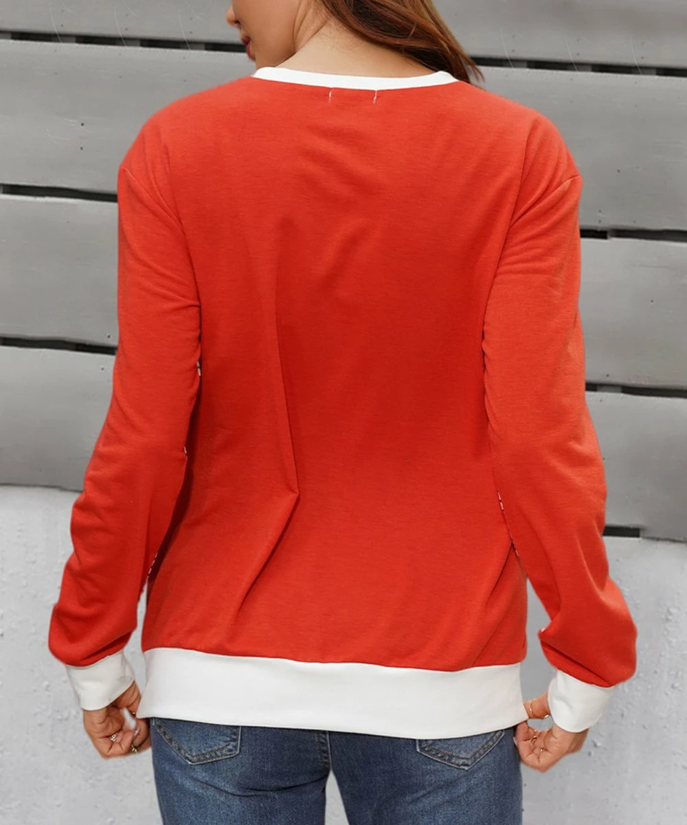 Spice up your ensemble with this long-sleeve top featuring a color-block design and thick banded cuffs.