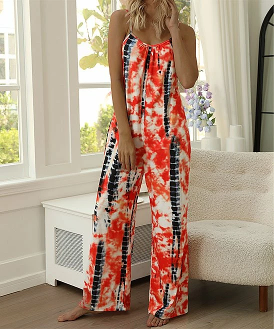 Cheap 🔔 Romantichut Red & White Tie-Dye Pocket Sleeveless Wide-Leg Jumpsuit – 👩 Women ⭐