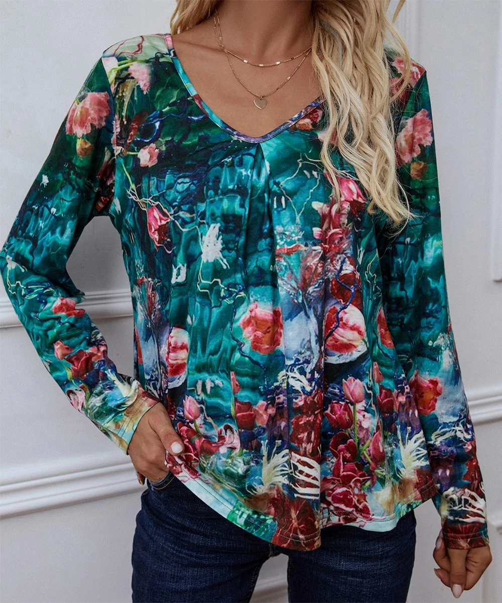 Add a vibrant touch to your look with this long-sleeve top boasting stretch-infused material and a flattering V-neckline for a hint of sass.
