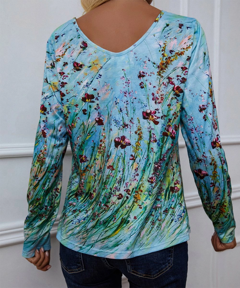Add a vibrant touch to your look with this long-sleeve top boasting stretch-infused material and a flattering V-neckline for a hint of sass.