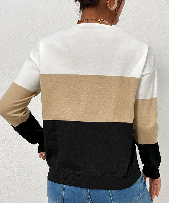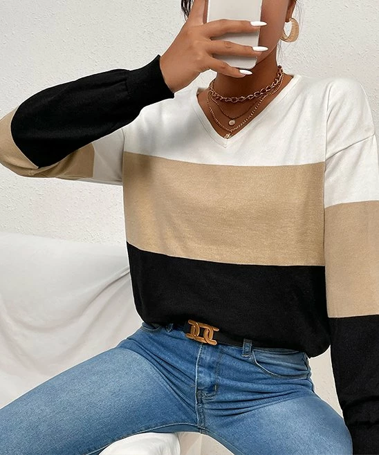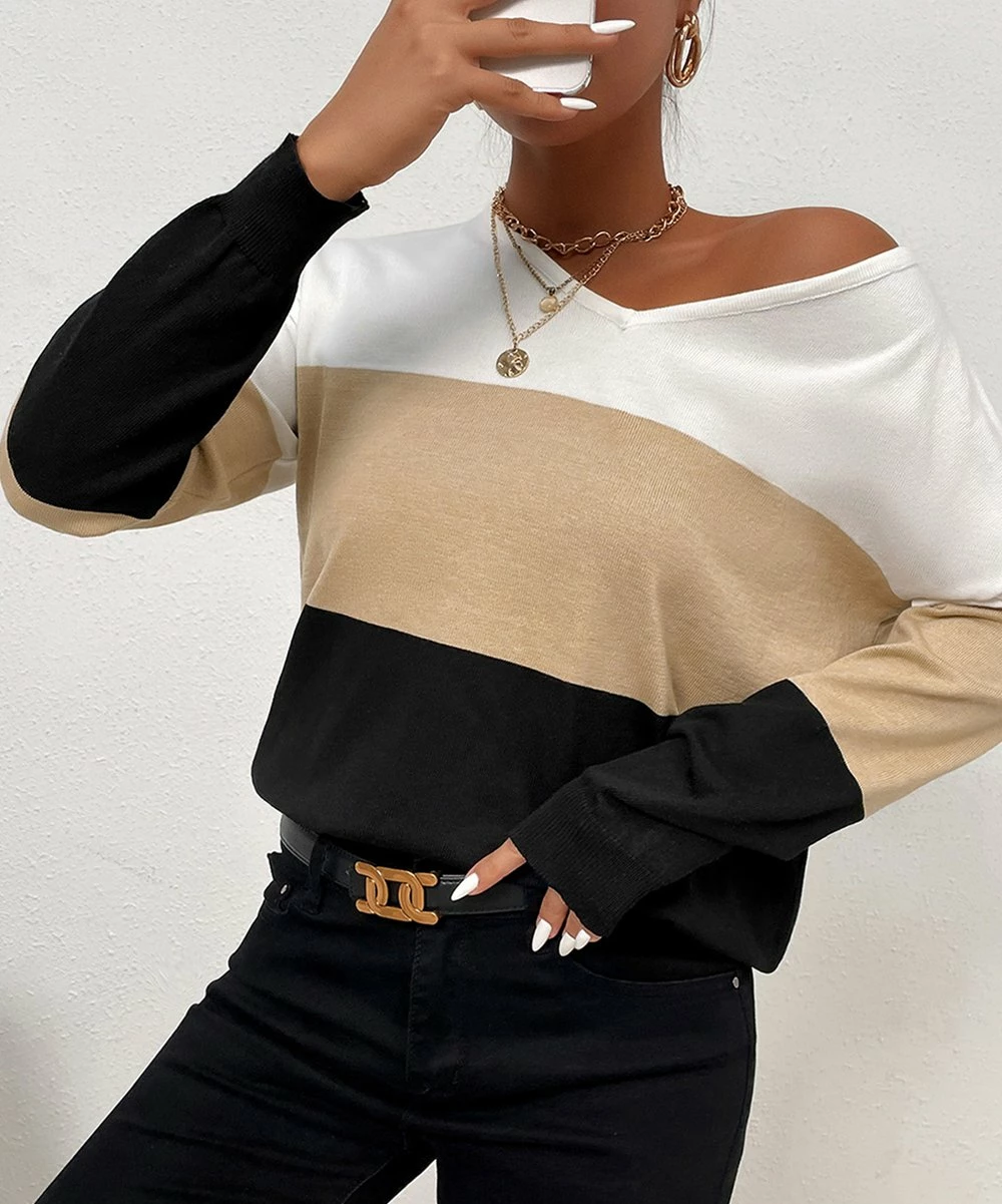 Wear this long-sleeve top for casual-chic style featuring a color block design.