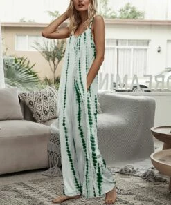 Best deal ๐ฅ Romantichut Green Tie-Dye Pocket Sleeveless Wide-Leg Jumpsuit – ๐ฉ Women โ