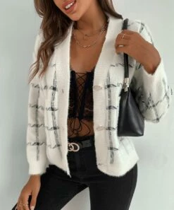 Discount ๐ Romantichut White Windowpane V-Neck Pocket Button-Up Cardigan – ๐ฉ Women ๐งจ
