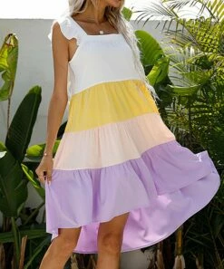 Promo ๐ฅฐ Romantichut Yellow & Pink Color Block Sleeveless Peasant ๐ Dress – ๐ฉ Women ๐ฅฐ