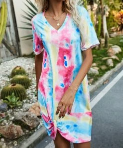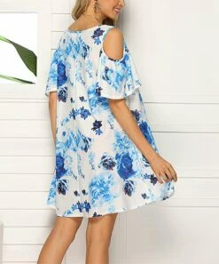 Top 10 ๐ Romantichut White & Blue V-Neck Cutout-Shoulder Shift ๐ Dress – ๐ฉ Women โ