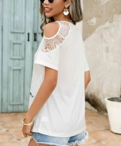 Top 10 ๐ Romantichut White & Pink Flower & Bird Lace Cutout-Shoulder Top – ๐ฉ Women โจ