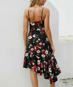 Top 10 โญ Romantichut Black Floral Ruffle Asymmetrical-Hem Sleeveless ๐ Dress – ๐ฉ Women ๐