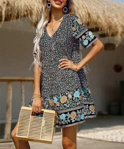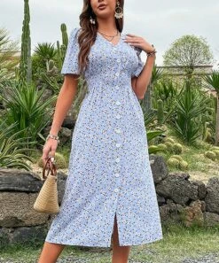 Hot Sale ๐ Romantichut Blue & White Floral Button-Up V-Neck Maxi ๐ Dress – ๐ฉ Women ๐