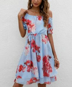 Flash Sale โญ Romantichut Blue Floral Crisscross-Back Sleeveless ๐ Dress – ๐ฉ Women โค๏ธ