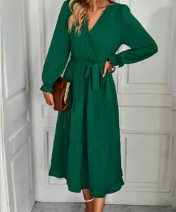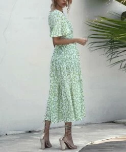 Hot Sale โค๏ธ Romantichut Green & White Floral Tie-Accent Tiered Maxi ๐ Dress – ๐ฉ Women ๐ฅฐ