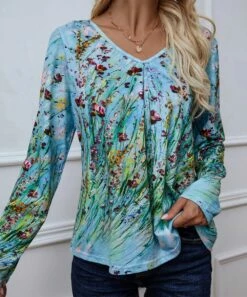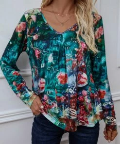 Best reviews of ๐ฏ Romantichut Turquoise & Green Floral V-Neck Long-Sleeve Top – ๐ฉ Women ๐ฅ