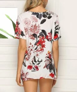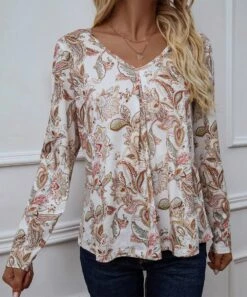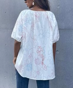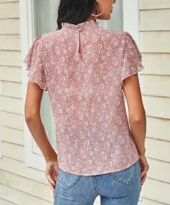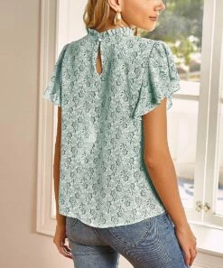 Deals 👏 Romantichut Light Green Floral Keyhole-Accent Mock Neck Flutter-Sleeve Top – 👩 Women ✨