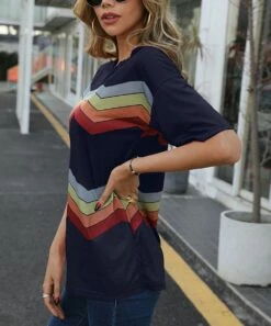 Discount 🥰 Romantichut Deep Blue & Red Zigzag Stripe Crewneck Short-Sleeve Tee – 👩 Women ❤️