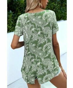 Wholesale ๐ Romantichut Green & White Paisley Scoop Neck Slit-Back Tee – ๐ฉ Women ๐ฅ